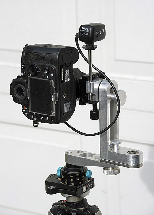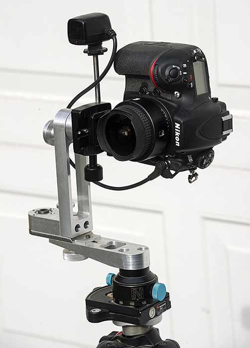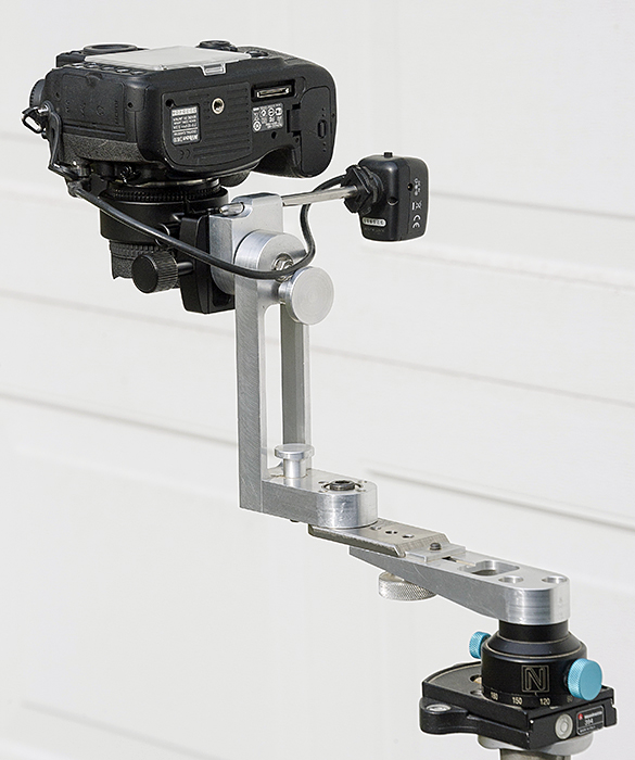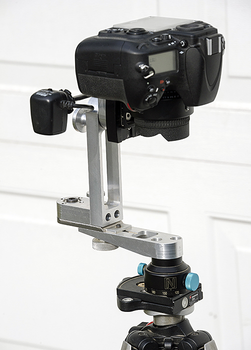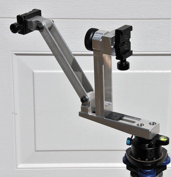 This is my favorite since it does not require the center column to be rotated. This one is even quicker to get from the Nadar shot to the Nadar patch shot than the previous version. No counter balance or any other extra weight is required to use this bracket.