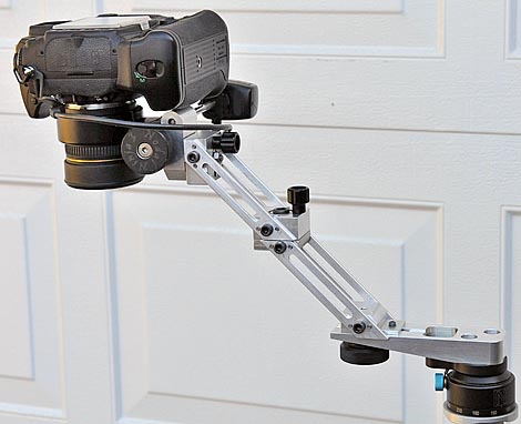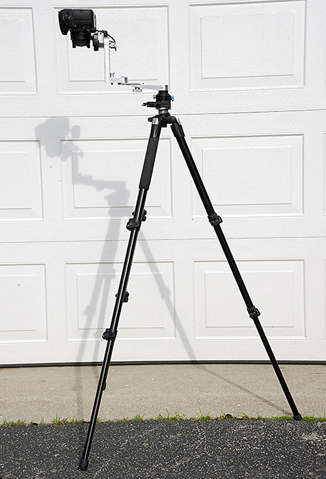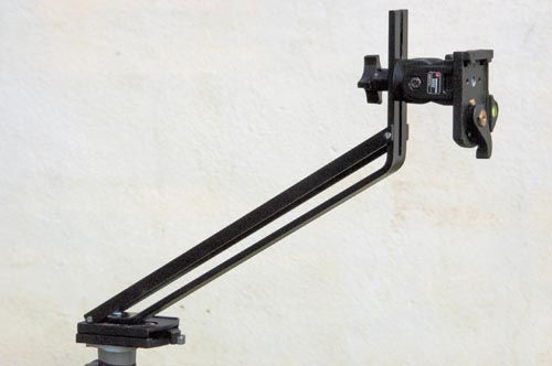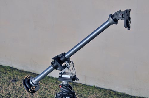 This is a real beast. I finally found a use for the Manfrotto leveler. Notice the counter balance weight at the end of the boom. The adjustable angle plate is custom made.