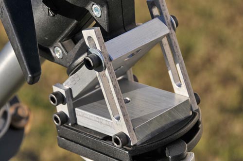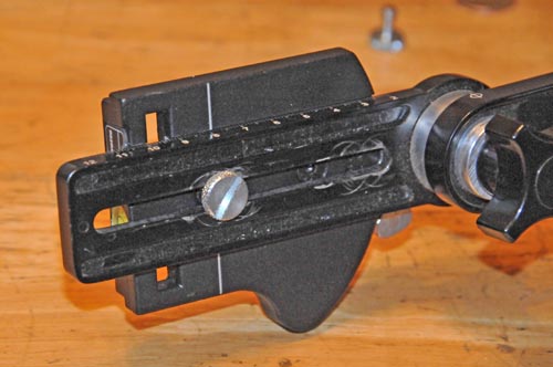 The two slots keep this bracket from rotating when I need to adjust front/back for the nodal point. I also modified the upper arm to add indexing. Much better than the stock friction pad.