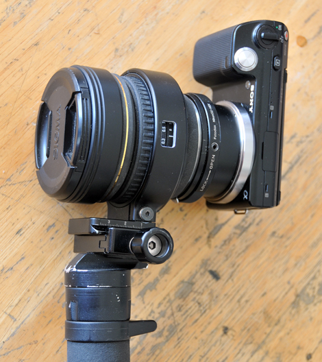 My first attempt at a bracket to hold the camera steady for the Nadar patch shot: