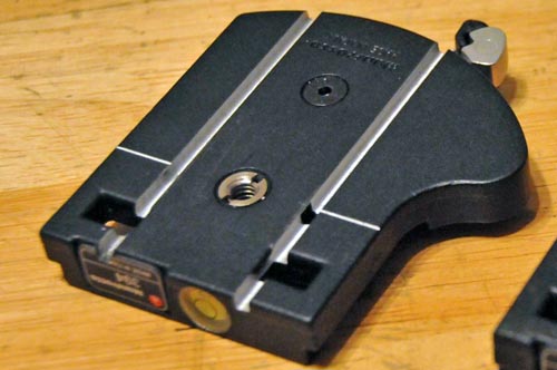 The angle plate in front locates the camera in one axis. The slot in the back is where the mounting bolt slides in. This locates the camera in the other axis. These two features locate the plate in the exact same position every time.
