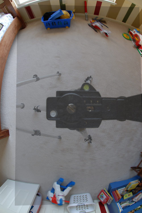 Somewhere in there you can see the ghost of the original Nodal Ninja 3. That pano head has long since passed on. I scavenged it so much that it is no longer useable.