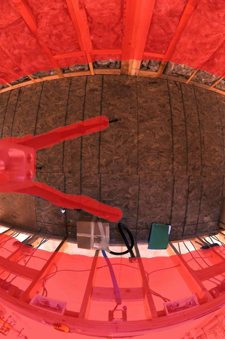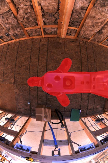 The new pano heads from Nodal Ninja have an optional 180 degree swivel. This allows you to swivel the camera out in order to take the Nadir patch shot.