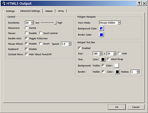 Next is to configure Pano2VR. These next series of screen shots are the settings I finally got to work. They are not necessarily the optimum.