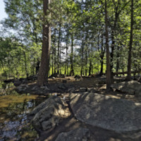 July 6th. Mirror Lake trail. The trail is currently blocked about 3/4 the way around by a rock slide.